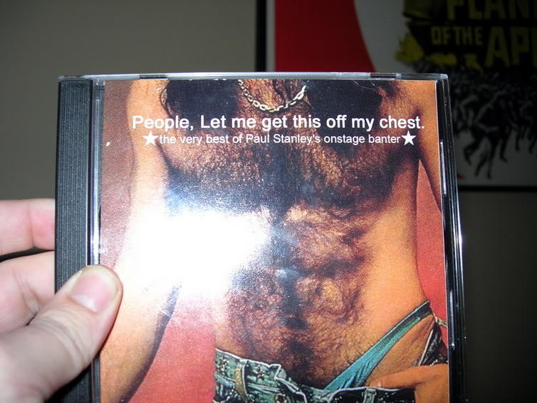 I have a whole disc worth of Paul Stanley’s stage banter. It’s an hour of Paul Stanley’s lame, “spontaneous” stage banter introducing KISS songs. I don’t like KISS, I don’t really have any of their music… but I do have this.